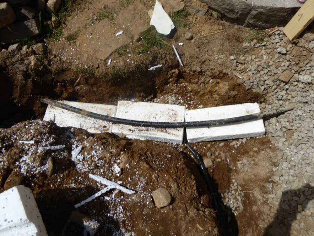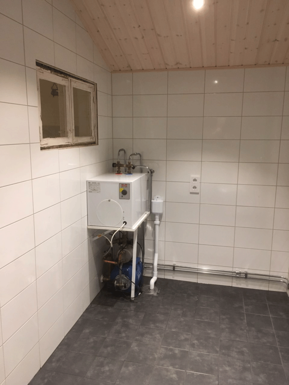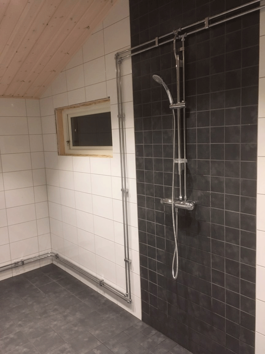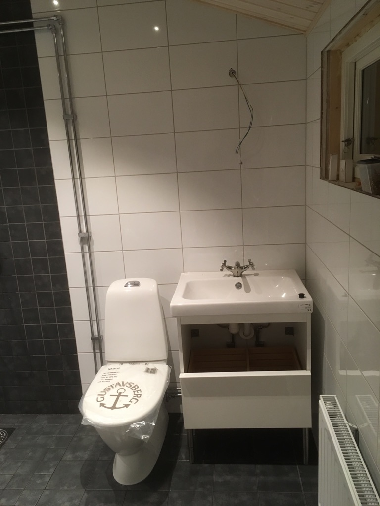 Stand Januar 2018 – nach den Fliesenarbeiten sind jetzt die Rohre verlegt: