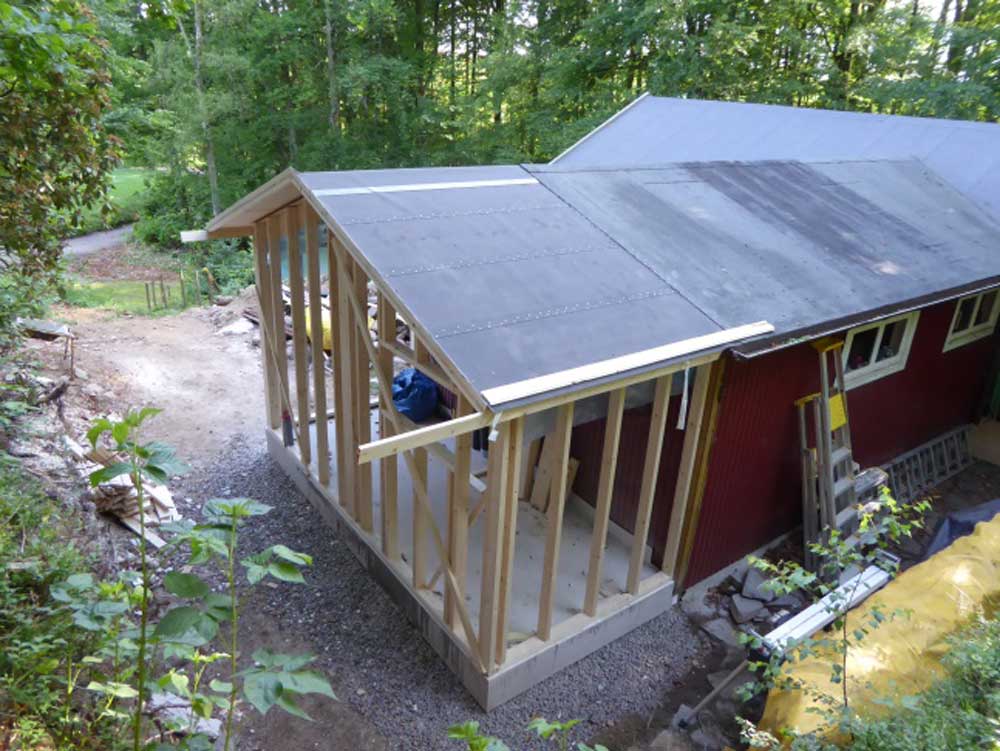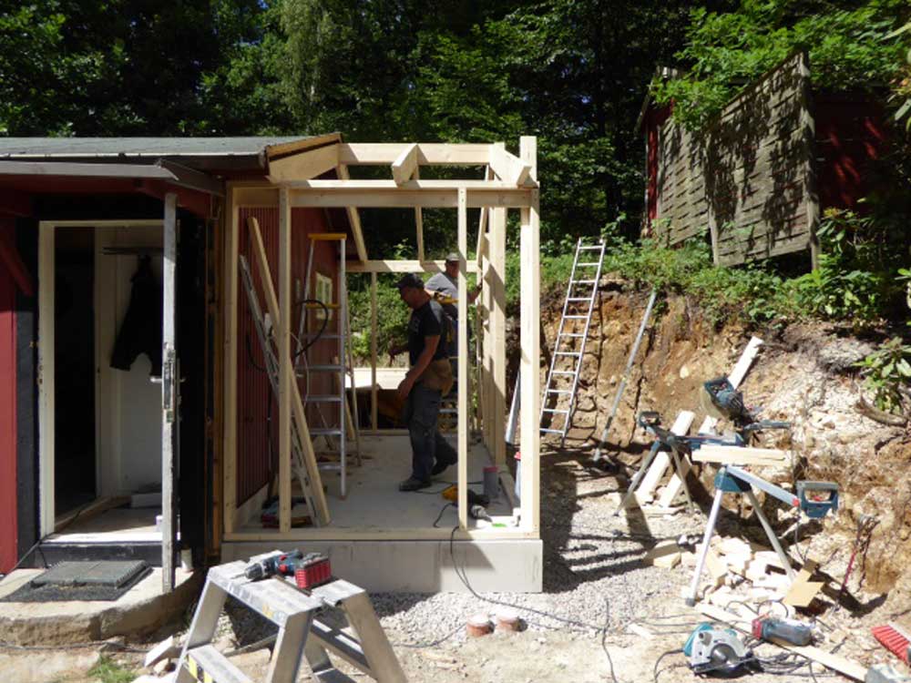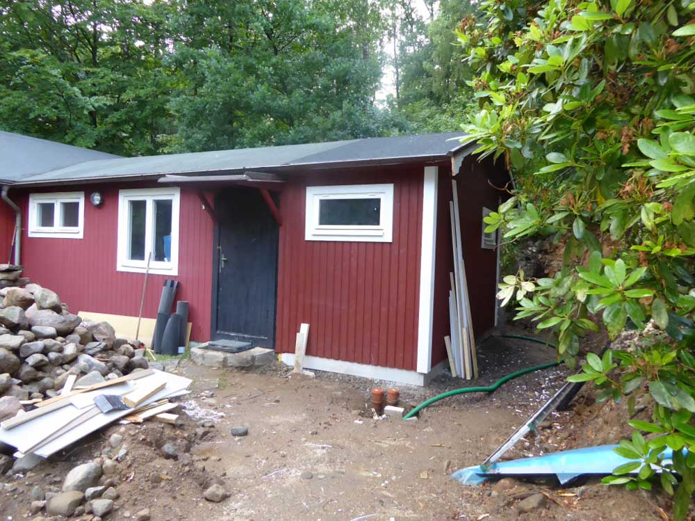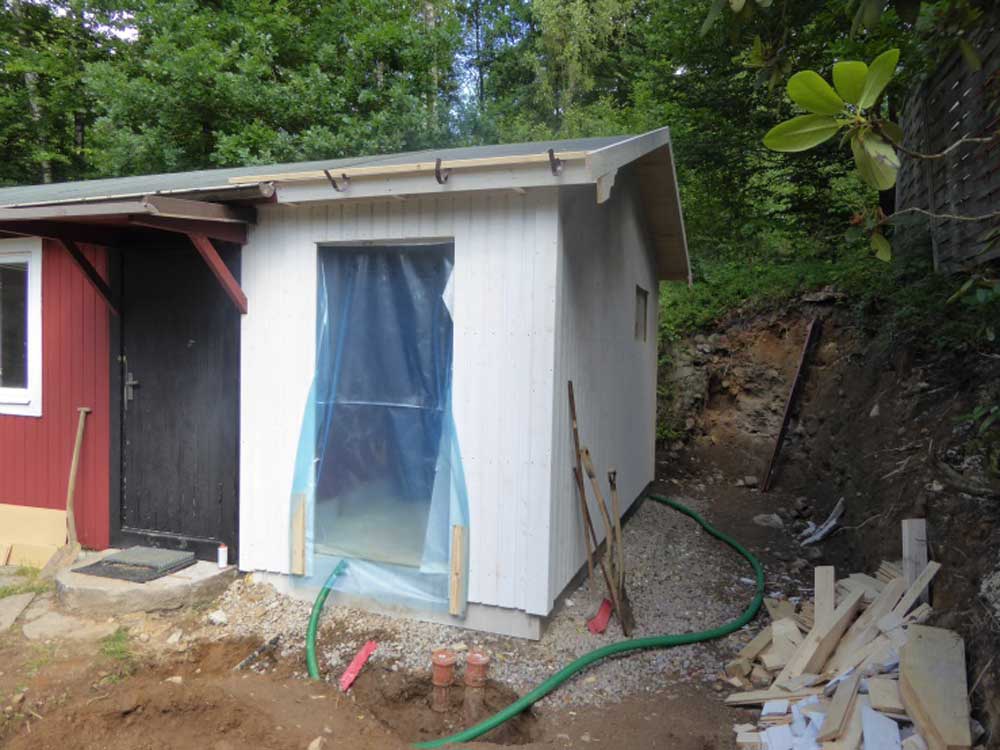 So sieht das während des Umbaus in 2017 aus. Der rechte Teil wurde angebaut und wird eine Dusche und ein WC enthalten: