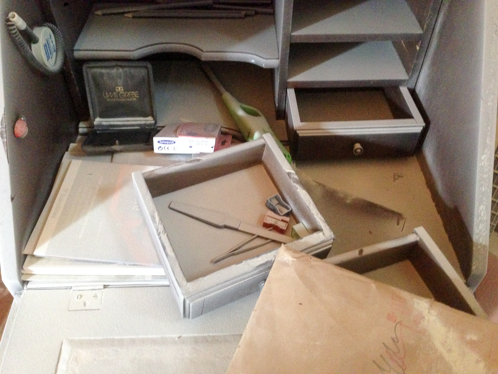 Alle Schubladen wurden geöffnet, damit sich das Pulver besser verteilt: