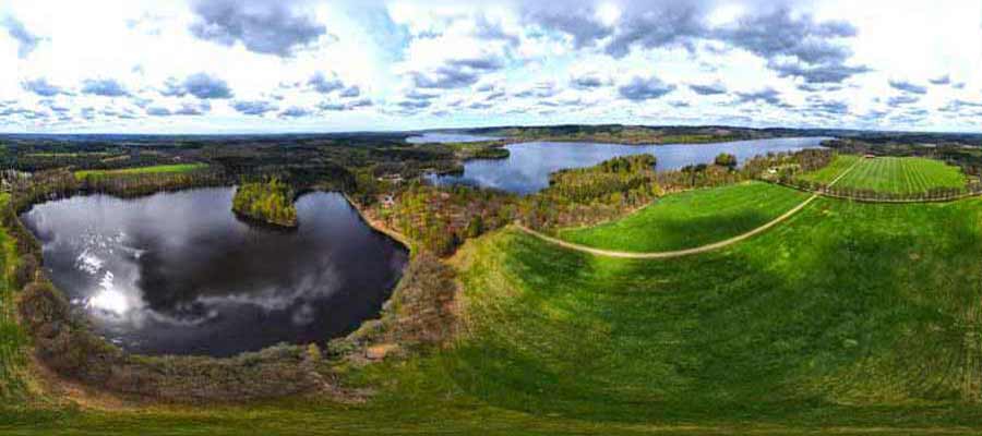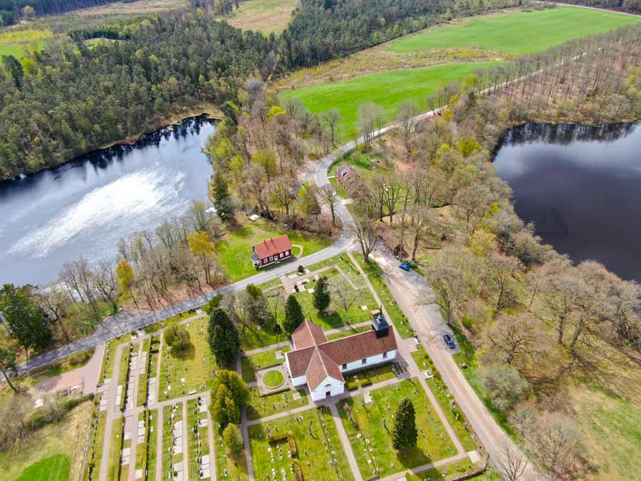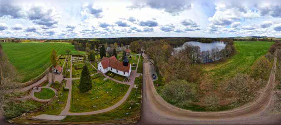 Auch dieses Bild ist ein Panoramabild mit Blick über Tåssjö Kyrka und den See:
