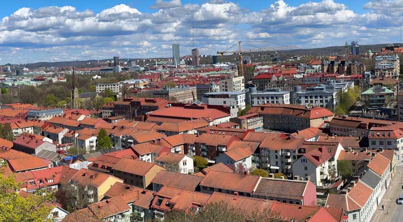 Dies ist ein Panoramabild. Zum Ansehen anklicken. Skyline von Göteborg